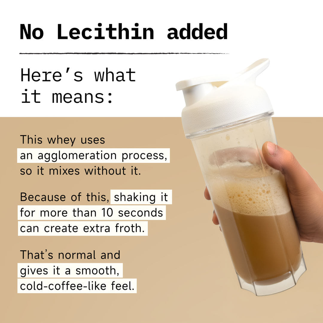 No lecithin added in whey, so it froths naturally like coffee